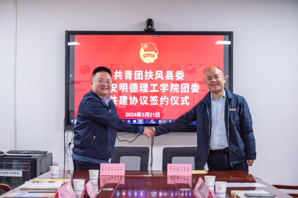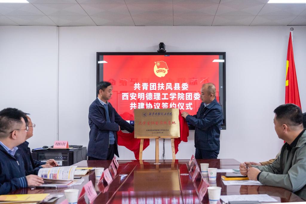 3月21日,共青团扶风县委和学校团委校地共建签约仪式暨大学生社会实践基地挂牌仪式在扶风县工业园区举行,双方就校地合作共建、大学生就业等内容展开交流,并达成共识。扶风县工业园区党工委副书记马霄飞、共青团扶风县委书记曹雷、县人才交流中心主任郭永锋、工业园区经济发展局局长徐靖范,学校团委书记童杨梓、招生就业中心副主任侯磊、团委副书记刘雄,信息工程学院党委副书记高长江、院团委书记王佳龙、辅导员于雯桦、院团委副书记谢培源参加交流会,会议由扶风团县委副书记唐雯莉主持。