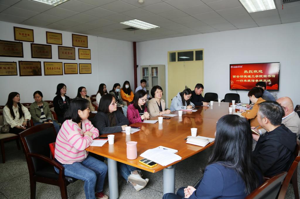 西安翻译学院图书馆馆长魏哲铭、副馆长侯永兴对大家的到来表示热烈欢迎,并组织两校图书馆馆员开展座谈交流。座谈会上,魏哲铭馆长首先从馆舍面积、资源建设、读者服务、智慧化建设等四个方面对西安翻译学院图书馆进行了简要介绍。然后,双方馆员就图书馆管理系统、特色资源建设、阅读推广、读者服务及文化育人等工作进行了对口交流与探讨。