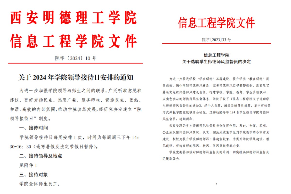 2024年3月,学院出台《关于进一步加强学院毕业生教育管理工作的通知》,开展了“毕业生座谈会”、“期中教学座谈会”、“退役复学大学生座谈会”、“迎评促建、学风创优学生代表座谈会”;深入迎新现场、学生军训场讲授“思政第一课”,为学院团委、党支部、学生干部讲授专题党课;深入学生课堂、学生班级、学生宿舍、互联网络,不断推进领导力量和思政力量下沉一线;选聘“学生师德师风监督员”,及时、全面、客观、公正地反馈师德师风情况,常态化落实学院“接诉即办”工作机制,认真、细致地听取学生对学院教育教学的各项意见建议,及时回应学生关切。