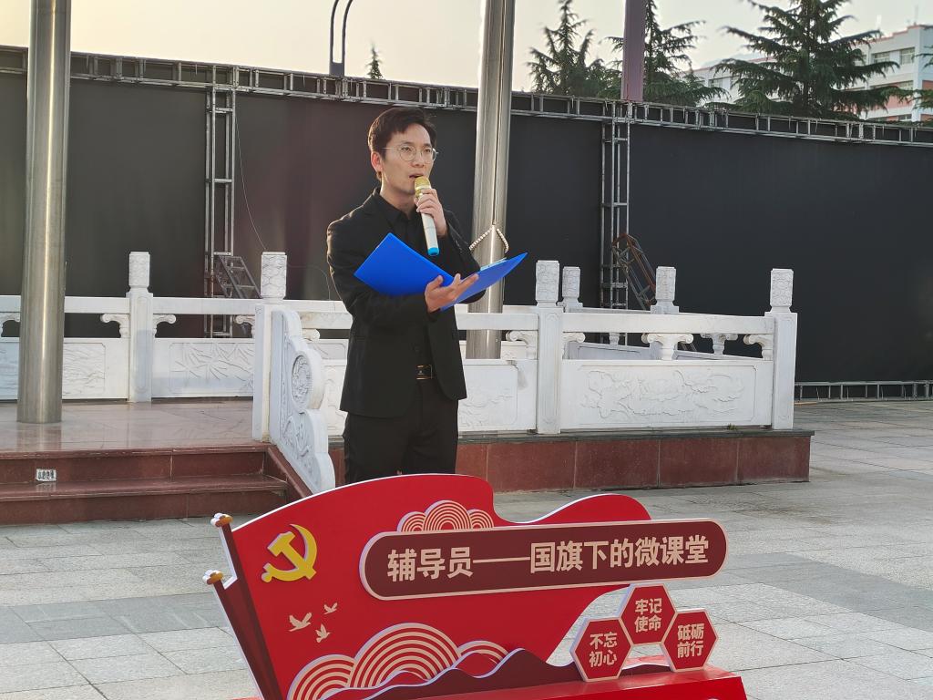 5月6日,“辅导员说成长”——第三十八期辅导员讲微课“热血青春奋勇激昂 明德学子扬帆远航”国旗下的微课堂爱国主义教育系列活动在学校中心广场举行,党委学生工作部老师、艺术与设计学院师生代表参加活动。