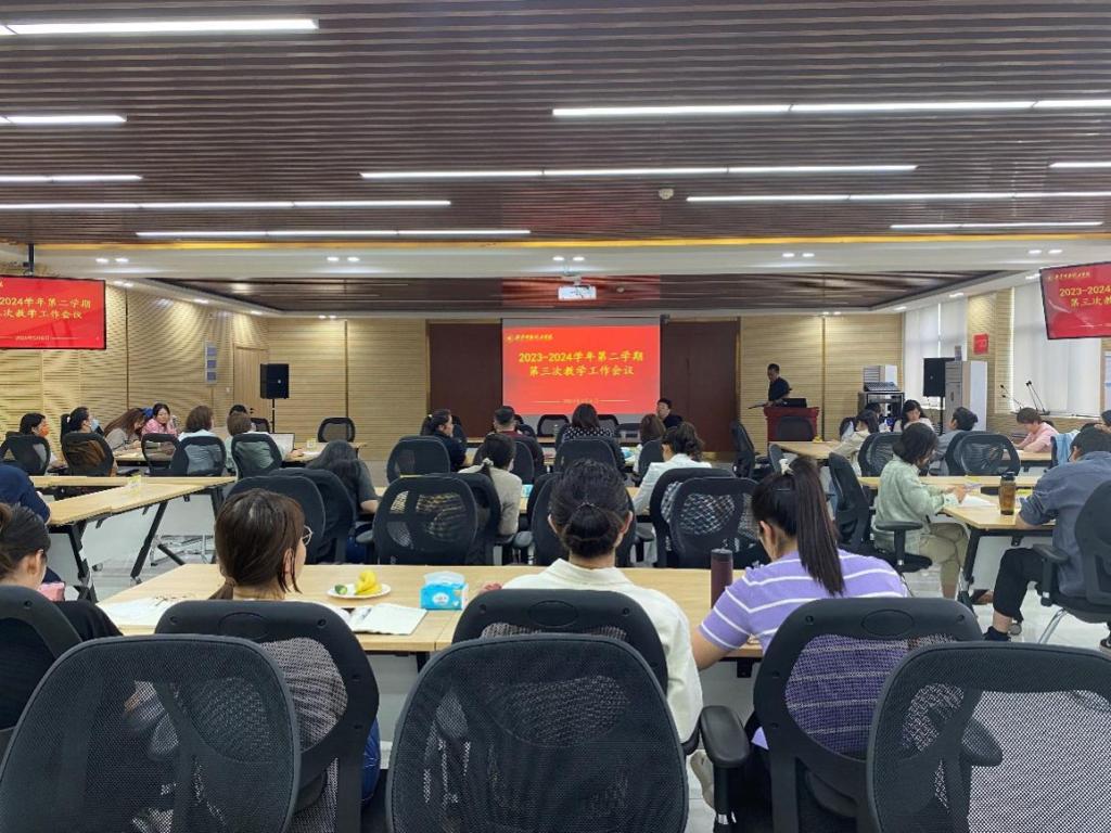 为切实提升教学管理水平,确保2023-2024学年第二学期教学工作平稳有序进行,教学任务安排合理落实,2024年5月8日下午,在明志楼南311报告厅顺利召开了2023-2024学年第二学期第三次教学工作会议。各二级学院教学副院长、办公室主任、教务员、教务处全体管理人员参加了会议。会议由教务处副处长文亮主持。