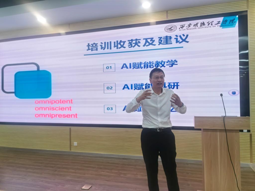 学院院长马庆林作听课反馈。他要求在课堂教学中教师要注重思政元素的有效融入,注重师生互动,做好课堂管理,关注前排就坐率和到课率。在分享AI赋能教学、AI赋能科研、AI赋能办公时,他指出,人工智能的发展为教育事业带来了新的机遇和挑战,作为高校教师应该积极拥抱AI技术,探索人工智能在教育领域的应用,推动教育教学的创新与发展。他随后部署了学院校级优势学科、特色学科的申报工作,通报了拟申报的外国语言文学学科和区域国别学科及其下设的3个方向。他鼓励全体教师积极参与,共同为学院的学科建设发展贡献力量。