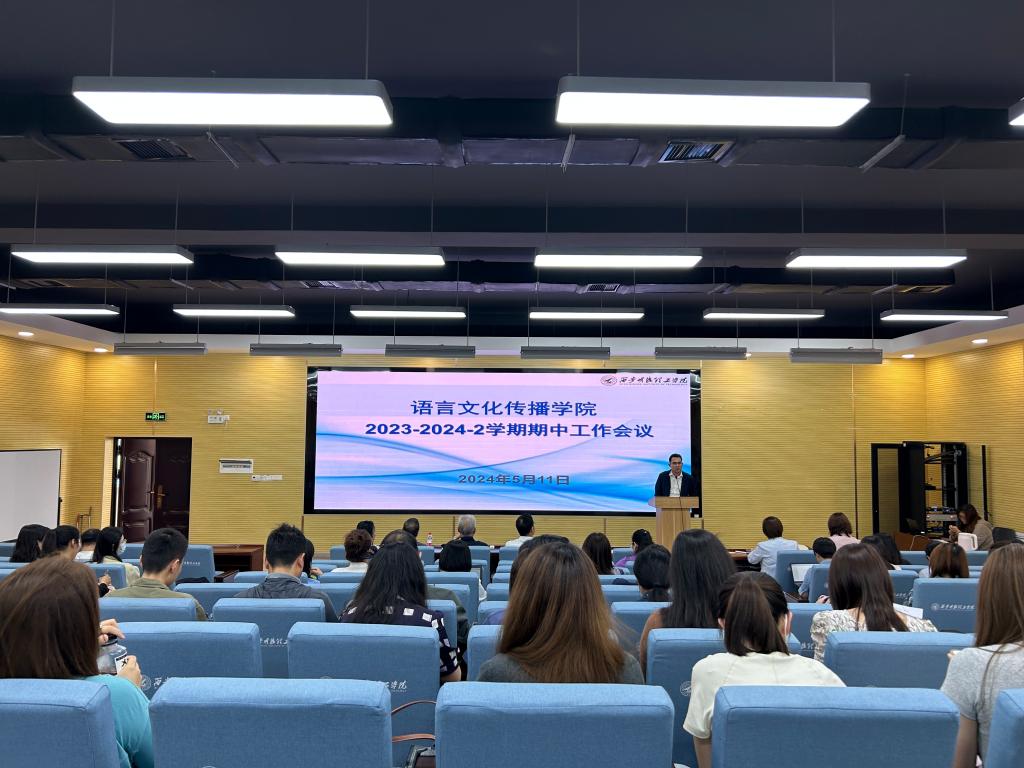 2024年5月11日下午,在6号楼201,语言文化传播学院召开2023-2024学年第二学期期中工作会议。会议由语言文化传播学院党委书记赵旭东主持,全体教职工参会。