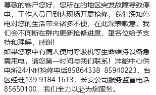学校领导、后勤管理处处长、党委学生工作部部长等第一时间到达现场,指挥应急工作。童部长迅速组织辅导员到岗到位,随时关注了解学生情况,协助维持校园秩序。后勤管理处袁处长及时与供电部门取得联系,了解停电原因和恢复供电时间。长安区供电部门也以短信形式提醒大家做好停电应急工作。