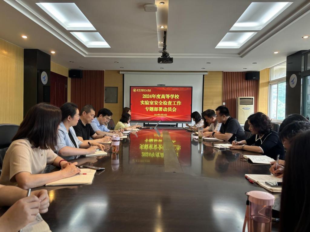 为贯彻落实陕西省教育厅关于2024年度高等学校实验室安全检查工作相关要求,确保学校实验室有序运行,保障广大师生人身安全和校园稳定,5月20日,学校在明理楼216会议室召开了2024年度高等学校实验室安全检查工作专题部署动员会。各二级学院主管实验室副院长以及各职能部门相关人员参加了会议。本次会议由教务处副处长任华主持。