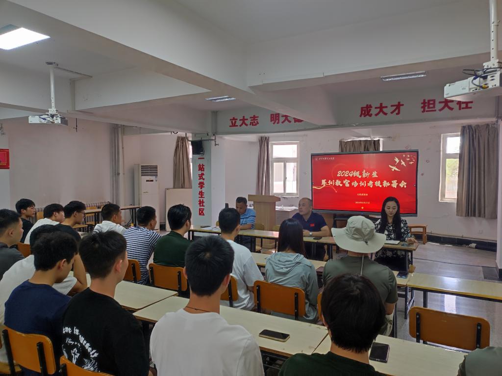 6月27日,学校人民武装部在一站式学生社区梅苑学业指导中心召开了退伍学生军训教官培训考核部署会,人民武装部副部长童杨梓与40余名退伍学生参加会议,会议由唐松轩主持。