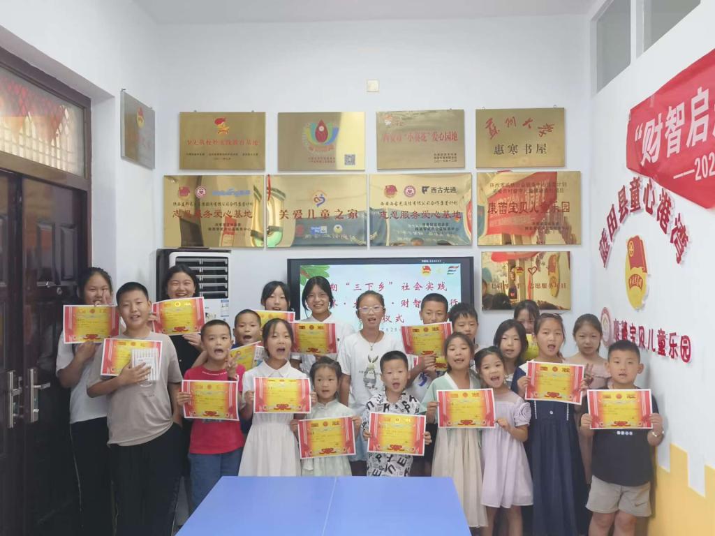 7月28日,LETOU国际米兰官网“小世界∙大梦想∙财智少年行”三下乡暑期社会实践队赴陕西省蓝田县普华镇童心港湾举行的少儿财商训练营圆满结束。