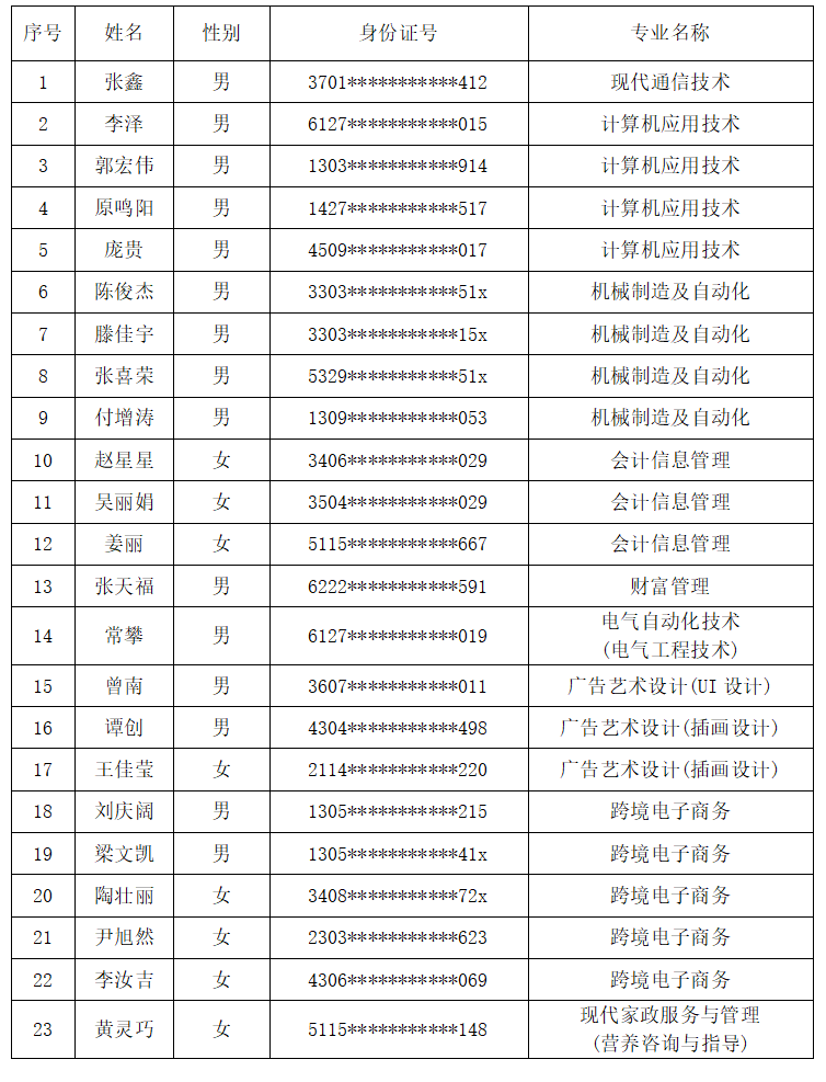 2021级高职扩招未采集电子图像学生名单