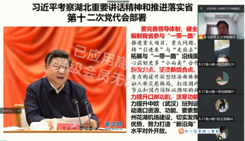 为进一步深刻认识习近平总书记考察湖北的重大意义。坚决把总书记的殷殷嘱托转化为做好湖北工作的实际行动,立足新发展阶段,完整、准确、全面贯彻新发展理念,推进落实省第十二次党代会部署,努力建设全国构建新发展格局先行区,教育引导师生创造新时代更加辉煌的业绩。根据省委宣传部,省教工委的指示,马克思主义学院发扬思政政治理论课主阵地作用,把习近平总书记考察湖北重要讲话精神及省第十二次党代会部署融入课堂,纳入新学期“开学第一课。