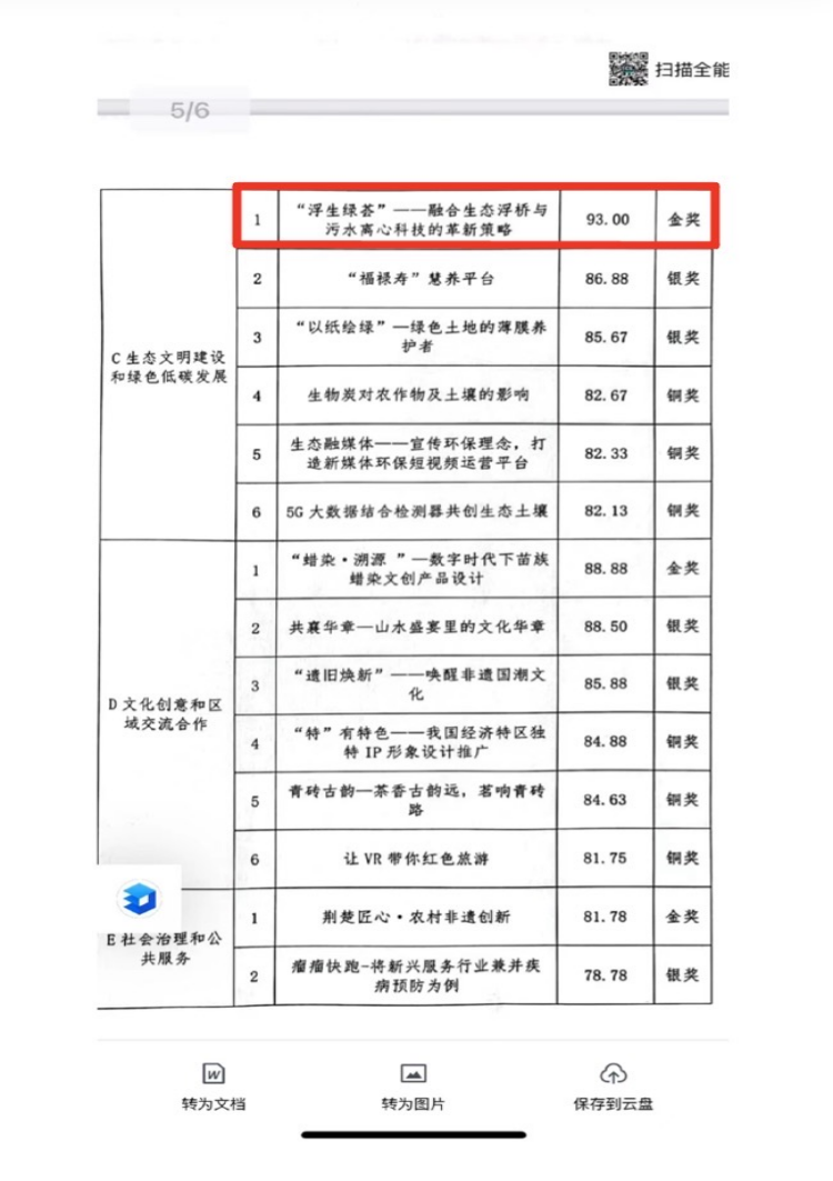 2024 年 5 月 10 日,beat365正版唯一官网必一 2024“挑战杯”校赛圆满结束。马克思主义学院阚欣、黄晨曲老师指导的参赛项目《“浮生绿绘”——融合生态浮桥与污水离心科技的核心策略》,勇夺 C 组生态文明建设和绿色低碳发展组第一名并获金奖。