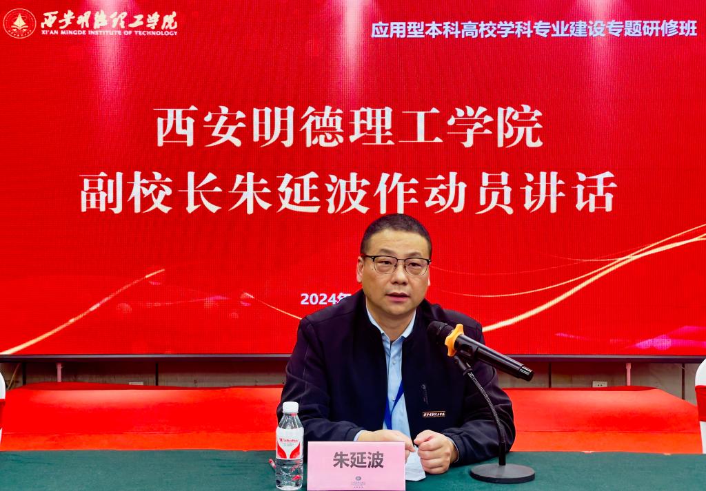 副校长朱延波在动员讲话中对顾永安教授及其团队大力支持学校学科专业建设高质量发展表示感谢,他表示,本次研修班是宝贵的学习机会,是促进学校学科专业高质量发展的关键环节,希望参训学员认真学习,积极互动,深入探讨,真正做到研有所获、修有所得、学以致用。