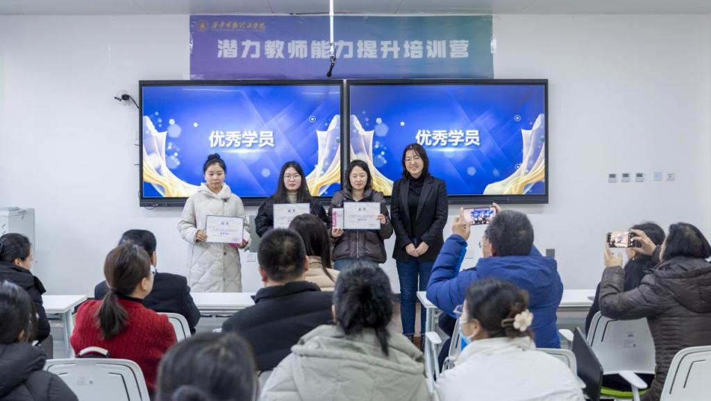2024年12月27日下午,学校“潜力教师能力提升培训营”结营仪式在8号教学楼504教室举行。学校党委副书记、副校长、纪委书记白秦川,质量管理与评估办公室主任张瑜,教务处副处长任华,信息工程学院院长翟书颖、副院长范晖,智能制造与控制技术学院院长殷锐、副院长李建勇,经济与管理学院副院长许萍,艺术与设计学院副院长冯强,高等职业技术学院院长舒忠受邀出席,部分授课专家及全体参训教师参加结营仪式。结营仪式由教师发展中心副主任郝丽静主持。
