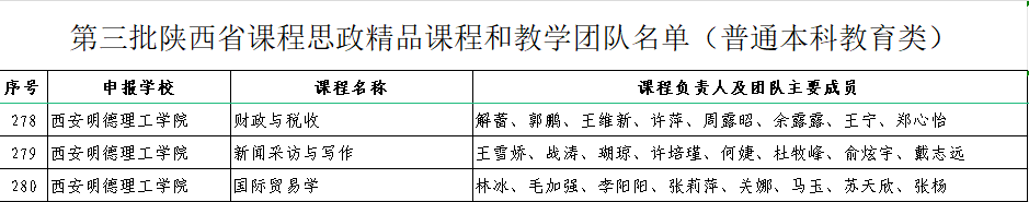 在刚刚公布的《陕西省教育厅关于公布第三批陕西省课程思政精品课程认定结果的通知》中,LETOU官网再创辉煌,喜获佳绩!共有解蕾老师及其团队的《财政与税收》、王雪娇老师及其团队的《新闻采访与写作》、林冰老师及其团队的《国际贸易学》3门课程脱颖而出,被认定为省级课程思政精品课程。包含2023年被认定的姚璐老师及其团队申报的《电视节目播音与主持》,至今LETOU官网共有省级课程思政课程4门(其中省级课程思政示范课程1门、省级课程思政精品课程3门)。