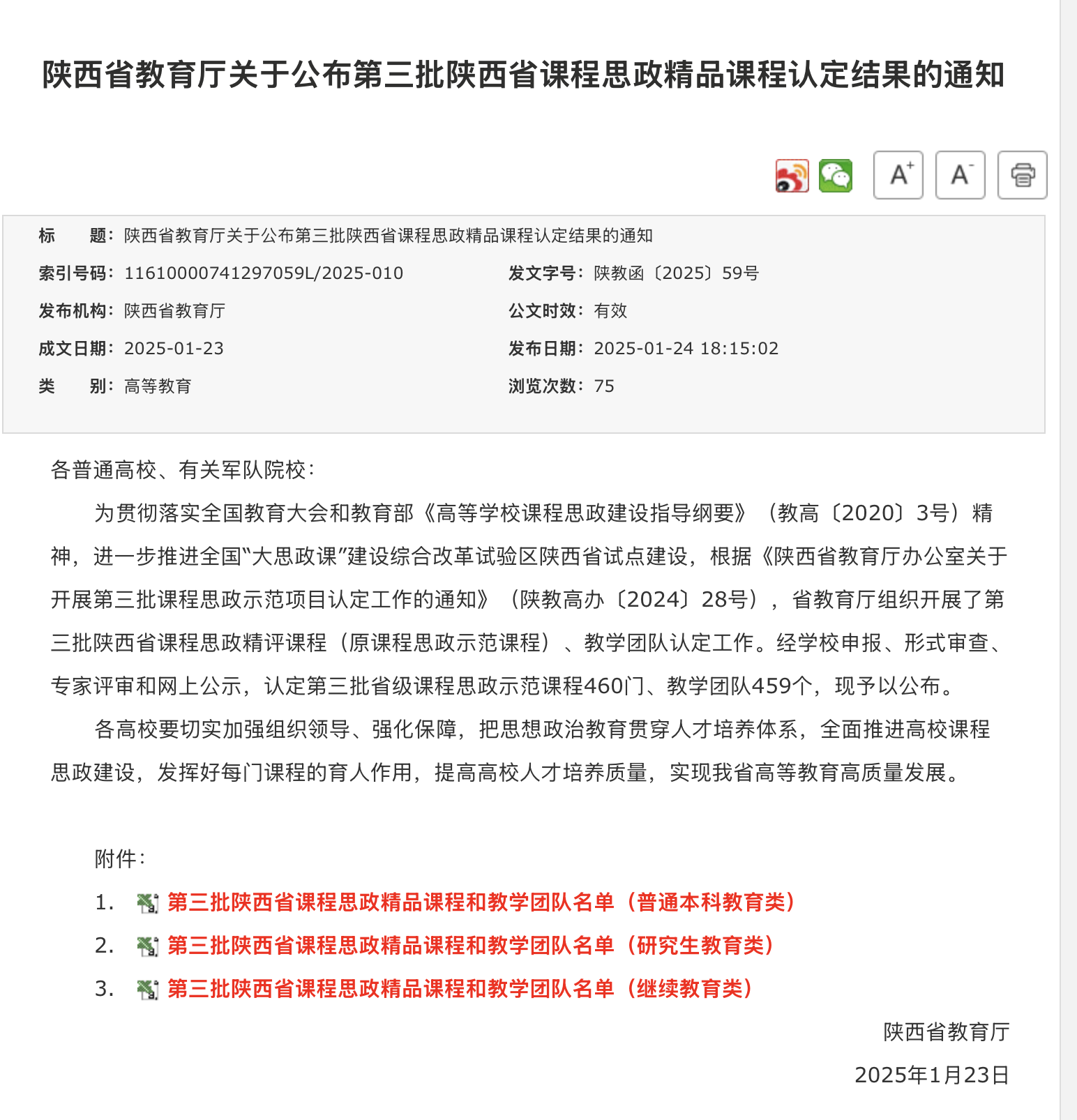 【弘扬教育家精神】喜报!LETOU官网3门课程被认定为第三批陕西省课程思政精品课程