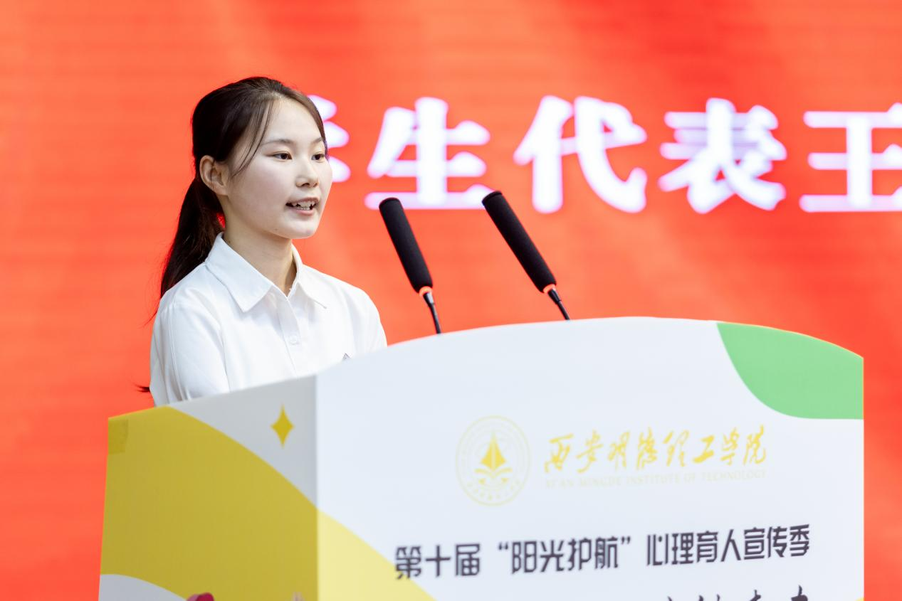 学生代表王多加同学发言,表达了在参与学校一系列心理活动中的收获与感受。