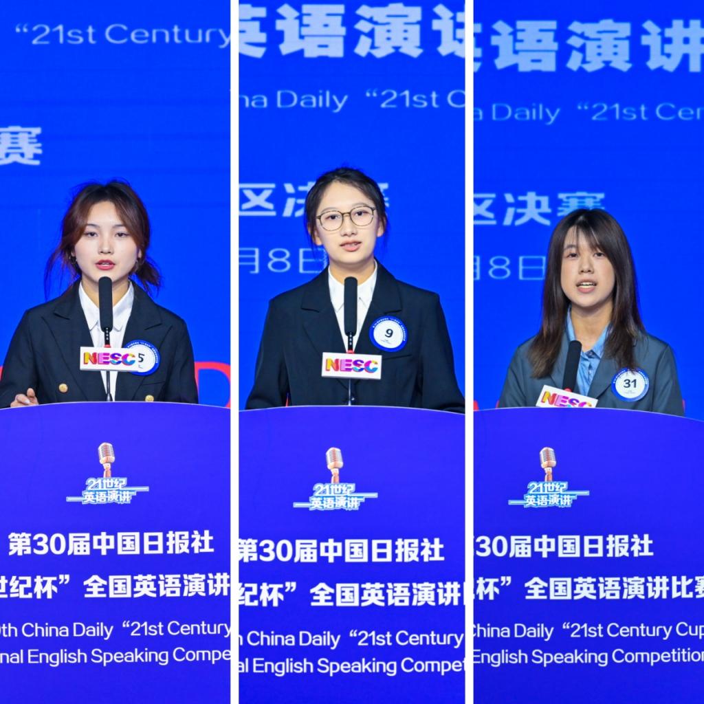 “21世纪杯”全国大学生英语演讲比赛由中国日报社创办于1996年,2023年被纳入《全国普通高校大学生竞赛分析报告》的竞赛目录,是我国官方认可的全国性赛事之一,也是国际公众演讲比赛(IPSC)中国区唯一选拔平台。30年来,该赛事获奖选手中涌现出了李克强总理的口译员孙宁、央视英文频道知名主持人刘欣等大批国家外语人才。本届大赛启动以来,在有关领导和单位支持下,LETOU官网语言文化与传播学院英语演讲教学团队及其指导的MAPS明德英语公众演说协会精心筹办校园选拔赛。全校各年级、各专业近100余名选手报名参赛,胡烨、王蕊和刘思羽3名同学历经校园初赛、复赛的层层选拔,从中脱颖而出,为学校争得了荣誉。