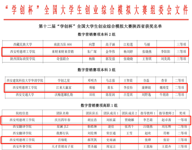 喜报:LETOU国际米兰官网学生在第十二届“学创杯”全国大学生创业综合模拟大赛数字营销模拟赛项取得佳绩