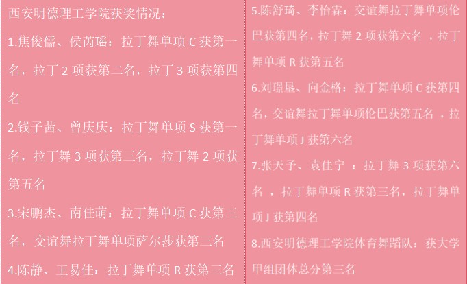 赛前,为展现最好风采,队员们争分夺秒训练。赛场上,他们迅速调动状态。最终,在单项恰恰恰混双项目中,队员们用灵动的步伐、热情的演绎,一举拿下第一名、第三名、第四名,点燃全场;单项桑巴赛场,选手以富有感染力的律动,将桑巴的活力与激情尽情释放,斩获第一名;拉丁双项混双项目里,默契配合的组合们,在第二名与第六名的荣誉背后,是无数次训练的汗水交融;拉丁双项女双、单项伦巴等项目中,队员们也凭借扎实功底,收获第五名、第三名等多个奖项。在交谊舞莎尔莎、伦巴及单项牛仔项目里,同样闪耀着明德舞者的风采。
