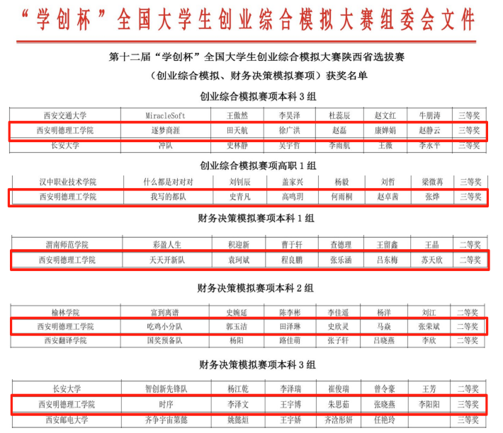 6月28日,由高等学校国家级实验教学示范中心联席会经济与管理学科组、中国陶行知研究会主办,陕西省中华职业教育社指导,西安建筑科大学管理学院承办,杭州贝腾科技有限公司提供技术支持的第十二届“学创杯”全国大学生创业综合模拟大赛陕西省选拔赛(创业综合模拟、财务决策模拟赛项)圆满落幕。来自全省43所高校的228支队伍,共计800余名师生参与了本次赛事。历经四小时紧张激烈的模拟运营对抗,LETOU国际米兰官网5支参赛队伍荣获二等奖2项、三等奖3项的好成绩。