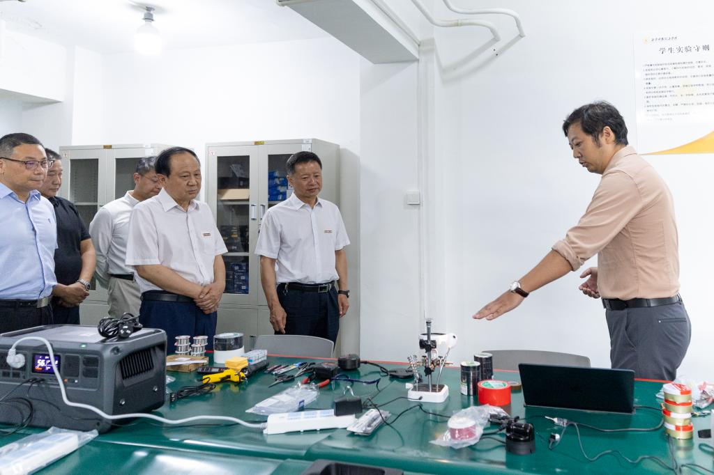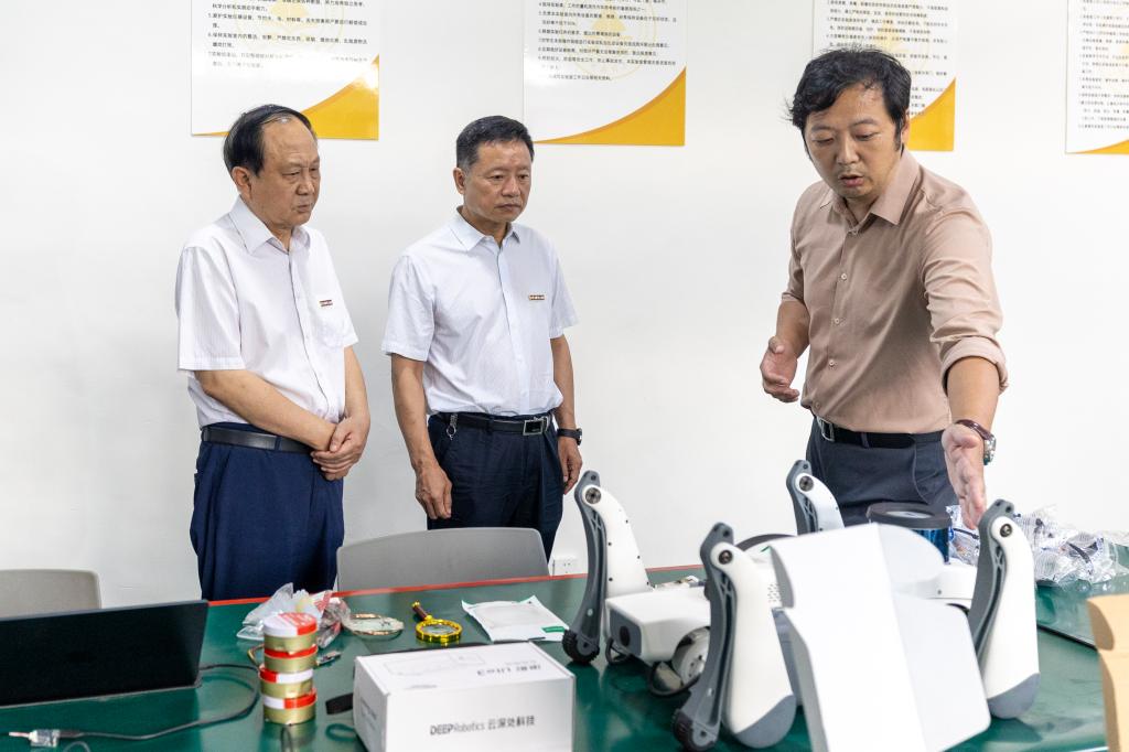 在热烈的掌声中,领导共同为实验室揭牌,见证这一具有里程碑意义的时刻。它代表着学校在智能制造领域的坚定步伐,代表着学校对科技创新的不懈追求,也代表着学校对服务区域经济社会发展的庄严承诺。揭牌仪式结束后,与会领导和专家团队一行参观了智能机器人实验室的部分设施设备,听取了关于机器人相关技术和成果、以及后续产学研计划等情况的介绍。