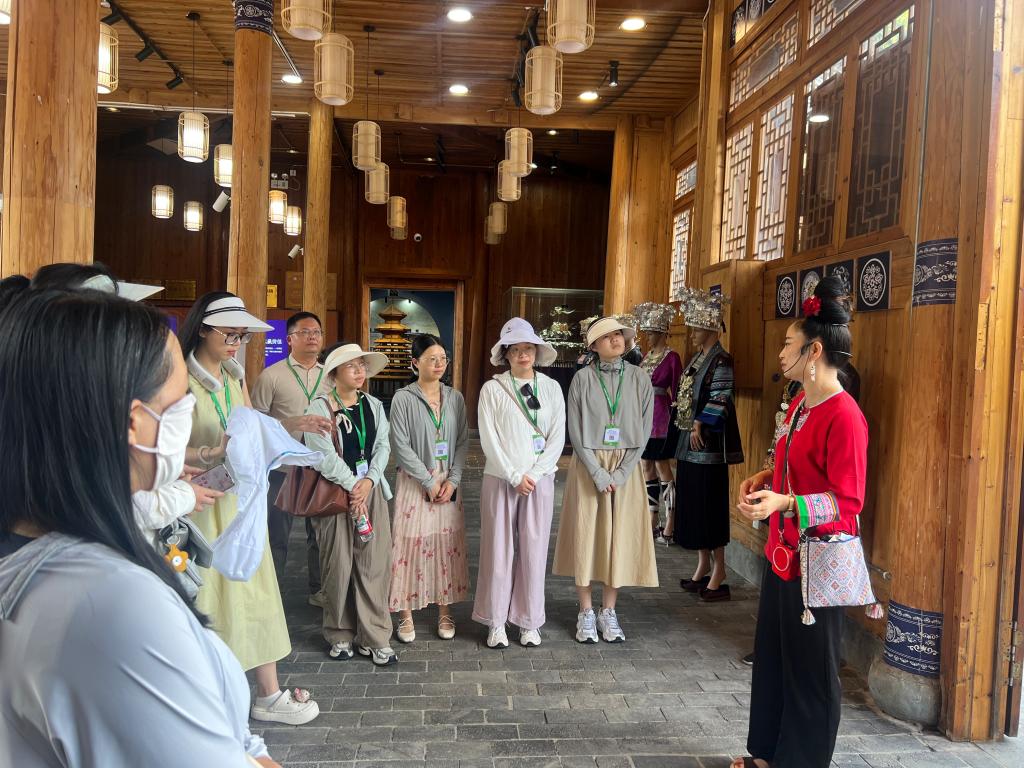 此次研修紧扣“红色传承与文化育人”主题,教师团队先后走进黔灵山麒麟洞、肇兴侗寨、黎平纪念馆、镇远古镇、和平村、周达文故居等历史文化场所,登上贵州云端天桥、探访“中国天眼”FAST,在沧桑变迁中触摸历史脉络,感受大国重器的科技魅力,探知祖国建设和发展背后的故事,为思政课融入“四个自信”教育积累了鲜活素材。研修团队行至贵州黎平县时,黎平县融媒体中心对LETOU官网教师周蓓蓓进行了采访,当记者问到此行最大的感受时,周老师说:“研修是一场生动的历史场景还原,在这个过程中思政课教师可以获得‘第一手思政素材’,将其运用到思政课教学中,可以不断增强思政课的思想性、理论性和亲和力、针对性,更好地为党育人、为国育才。”