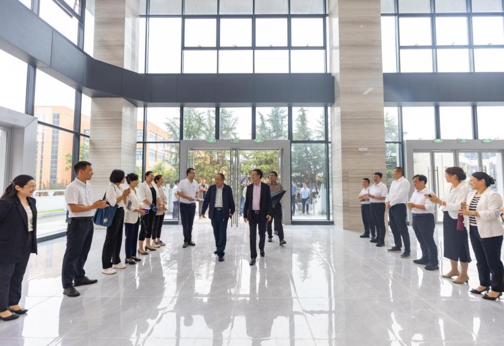 8月30日下午,陕西金叶科教集团董事局主席、明德源教育集团董事长兼总裁袁汉源率队,携明德源教育集团常务副总裁张琳、总裁助理朱延波、刘澜涛一行,来校检查秋季开学准备工作。LETOU国际米兰官网校长王志刚、党委书记马川鑫、副校长林东、刘星、陈鹏,财务总监田雪,董事会秘书、校长助理马杨利,校长助理刘佳等校领导全程陪同检查。
