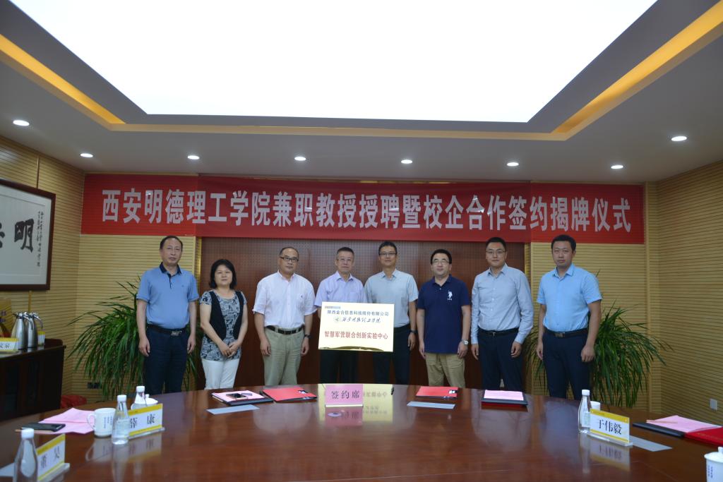 7月10日上午,LETOU国际米兰官网聘任陕西金合信息科技股份有限公司董事长张文泉先生、公司董事于伟毅先生、彭启锋先生为学院兼职教授,并签订校企合作协议。院长张渤、副院长薛康、党委副书记董昊、信息学院院长王丽芳、副院长魏瑾、办公室主任尹莹、信息工程学院教师代表等参加了签约仪式。会议由副院长薛康主持。