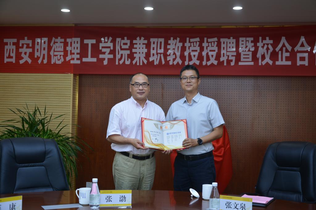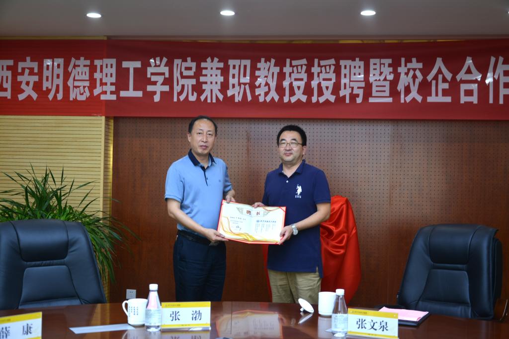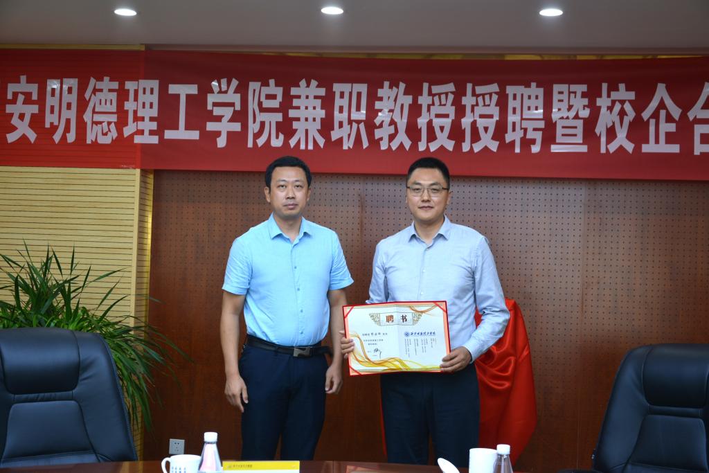 张渤院长表示,学院以建设高水平应用型大学为目标,努力为国家和地区培养具有社会责任感、创新精神和实践能力的高素质应用型人才,以本次签订合作协议为契机,强化学生动手能力,创新人才培养模式,加强与企业之间的合作与交流,拓宽高校学生就业渠道,实现学院、企业的共赢发展。随后,董昊副书记介绍专家的个人情况,并由学院领导颁发兼职教授聘书。
