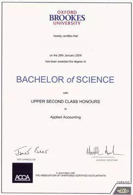 2)学员通过应用技能阶段,可获得高级商业会计证书,并可申请牛津布鲁克斯大学应用会计学士学位。