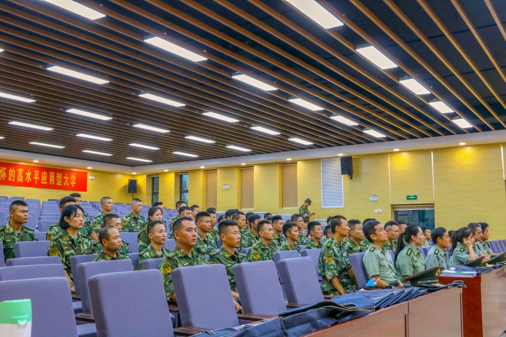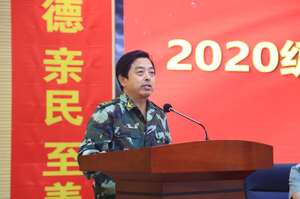 董昊同志作了军训动员讲话。他代表学院对承训官兵的到来表示热烈的欢迎,并高度赞誉了训练基地教官们良好的政治素质和过硬的军事本领,并要求学院参训干部严格按照计划进行训练,做到三个“同时”,一是要全体军政干部严格管理,认真上好新生入校第一课的同时不忘严管和厚爱相结合,关心爱护学生;二是要在严格要求学生的同时以身作则,从严要求自身;三是要圆满完成军训任务的同时照顾好自身健康。最后,他希望全体军政干部相互尊重、积极配合、团结协作,高质量完成本次军训任务。