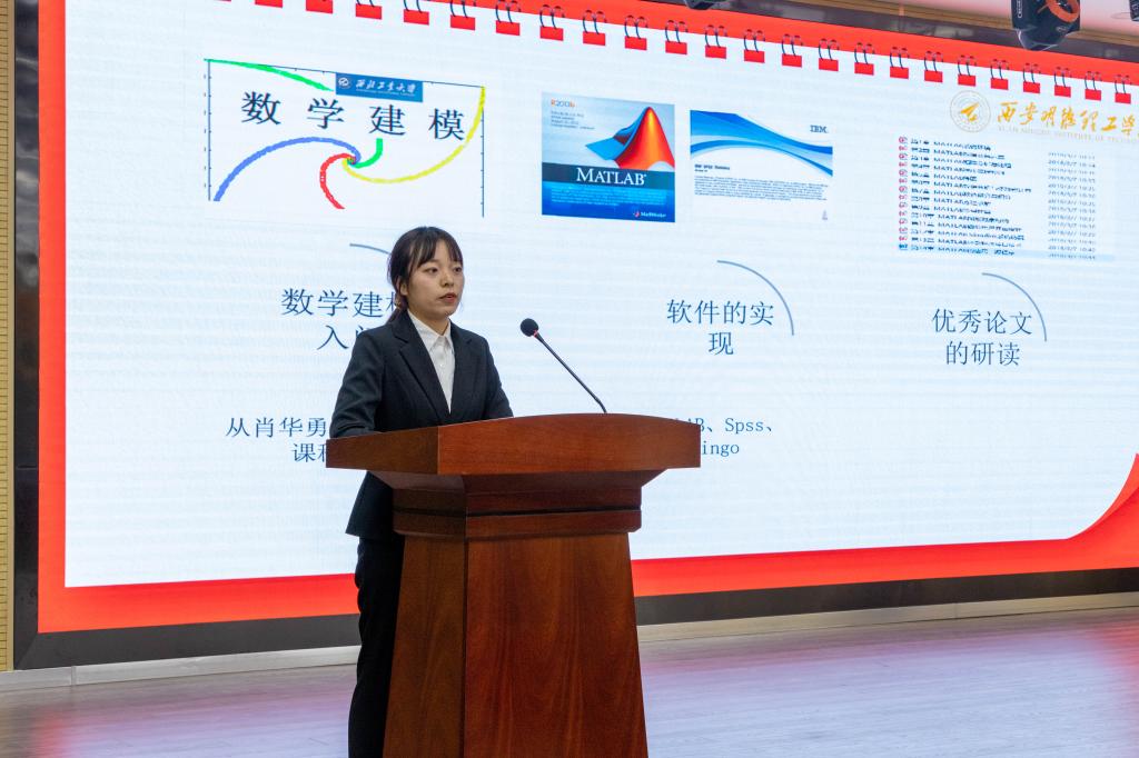 再次,赵浩钧、陈亚聪、林吉荣代表获奖同学进行了参赛经验分享,三位同学分别从日常学习、参赛心得、参赛收获等方面做了交流分享,还表示通过参加数学建模竞赛,不仅激发了自己的创造力,也大大提高了自己的自信心。