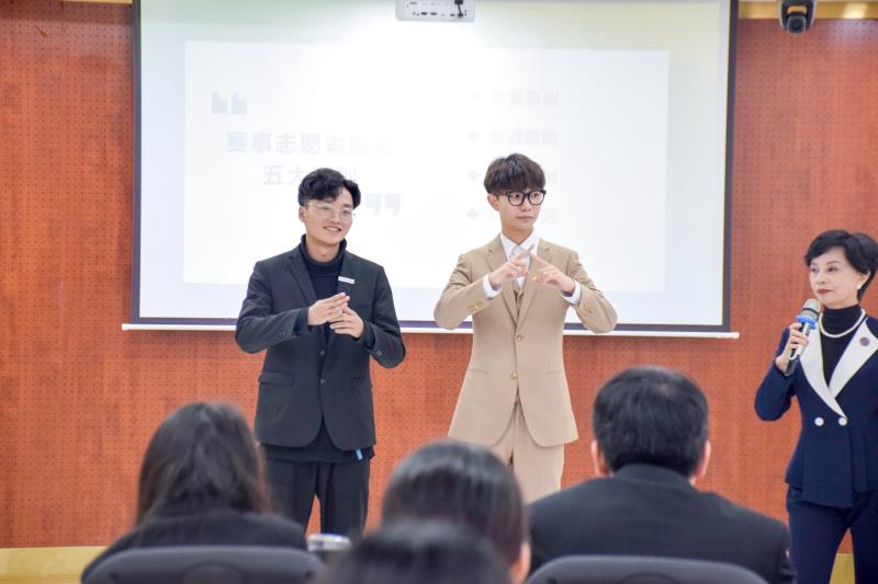第二日,《残疾人服务培训》主讲师敬澜茹老师讲解了对残疾人服务的正确方法,并表示志愿者要践行“奉献、友爱、互助、进步”的志愿精神,以贴心的服务对残疾人进行帮助,使赛会志愿者以饱满的热情迎接残奥会的到来;《赛会礼仪形象训练》主讲师文锦玲老师强调作为一名志愿者需要保持的仪容体态与服装穿着要求,时刻注意个人的言行举止;《全运会、残特奥会常识》和《志愿者通用政策解读》主讲师李洁珩老师向各位赛会志愿者讲解了十四运和残奥会的相关知识,并向志愿者们强调了身为赛会志愿者的责任和义务。