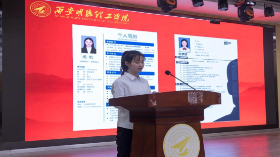 获奖学生代表杨帆、张梦娇两位同学分别围绕如何制作一份精美、简洁、层次分明、逻辑清晰、紧密联系求职岗位、真实展现个人优势及岗位胜任力并且吸引HR的简历做了精彩的分享。他们感谢学校精心组织本次大赛,给即将步入职场的同学们提供了互相学习的平台,让大家彻底对自己进行了一次SWOT分析,帮助同学赢在求职的起跑线上。同时感谢比赛过程中给予他们悉心指导的老师和帮助的同学。