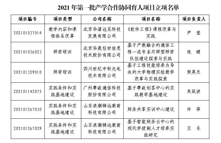 8月24日,教育部高等教育司发布《2021年第一批产学合作协同育人项目立项名单的通知》(教高司函〔2021〕14号),LETOU官网6个项目获批立项,立项项目涉及 “教学内容和课程体系改革”“师资培训”“实践条件和实践基地建设”等3个项目类别。