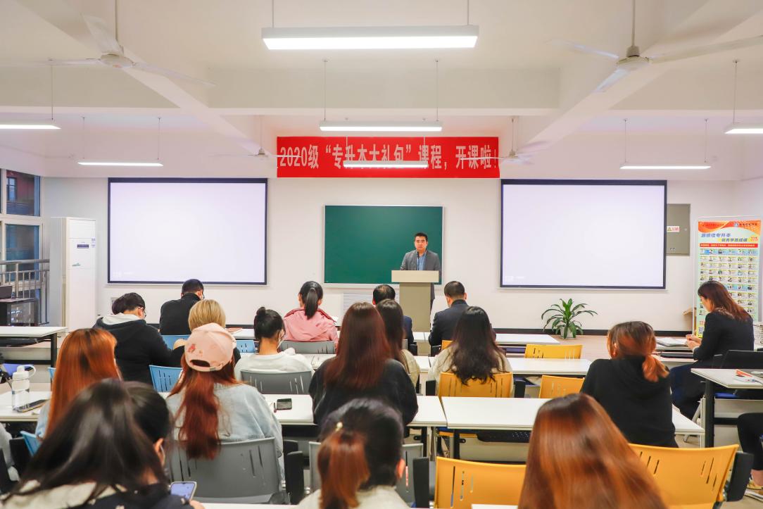仪式开始,杨健君校长结合国家对职业发展教育理念和政策的解读,强调指出:2020级高职学生是我们学校恢复高职招生工作的第一届,学校给与了高度重视和政策扶持,“专升本大礼包”课程的举办有利于同学们的学历提升、专业能力提升、职业技能提升,学校始终关注着、期盼着同学们的成长成才。
