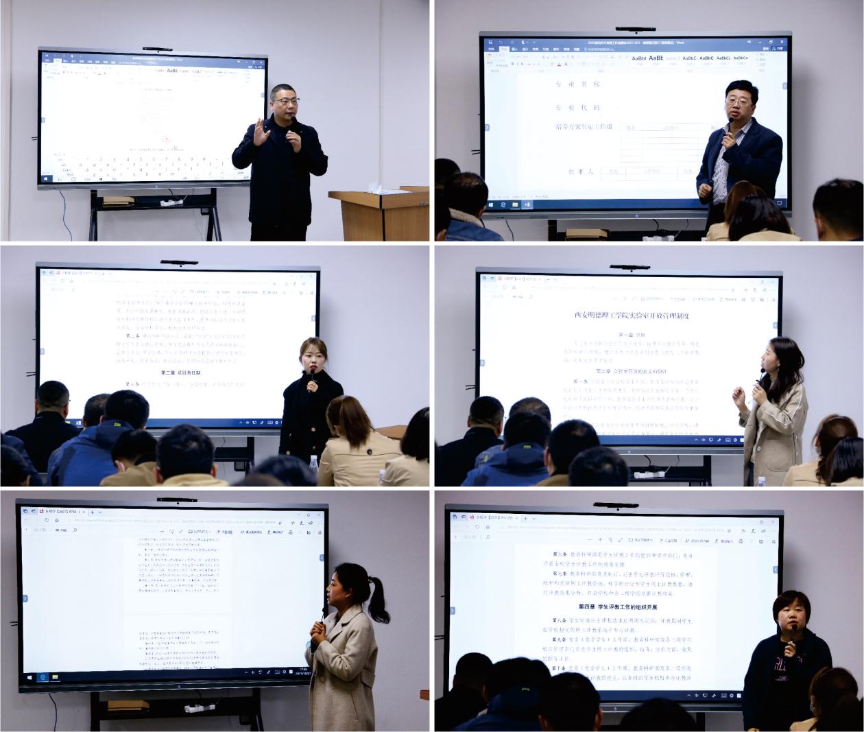 朱延波部长对一年来本部门所修订与完善的教学管理制度文件进行介绍,相关文件负责人对部分文件进行了重点解读,具体解读内容涵盖教材建设管理、横向科研项目管理、实验室项目管理、实验室开放管理、科研基金项目管理、学生评教工作管理、学生入学资格审查工作等。