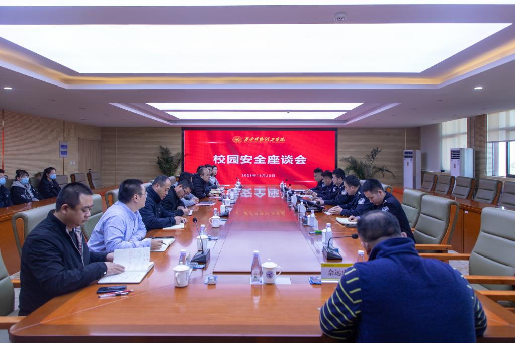 为进一步加强校园稳定安全工作,构建平安和谐的校园环境,11月23日下午,学校联合驻地派出所在明志楼518会议室召开校园安全座谈会,公安长安分局滦镇派出所教导员李保国,学校党委副书记董昊,滦镇派出所民警王新鹏、于清涛、王琦、曹培,各学院党委(党总支)书记、副书记,党委学生工作部、后勤安保部相关人员,学生代表等参加了座谈会。会议由党委学生工作部副部长童杨梓主持。