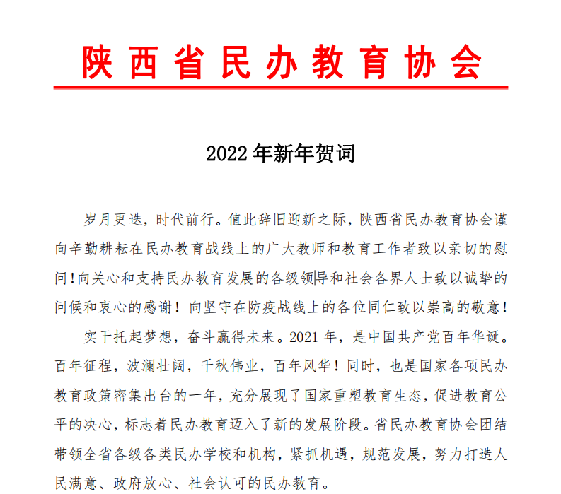 陕西省民办教育协会新年贺词