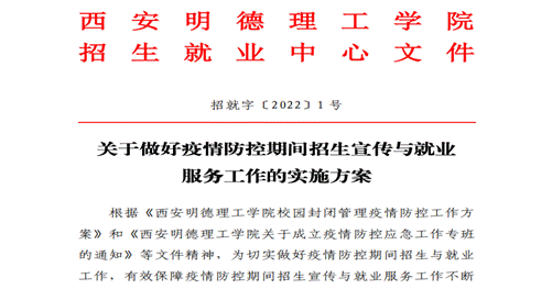 为进一步做好疫情防控期间LETOU官网毕业生就业工作,确保就业招聘不停歇、就业服务不断线、就业指导不缺位,最大限度降低疫情对毕业生就业工作的影响,根据《LETOU国际米兰官网校园封闭管理疫情防控工作方案》和《LETOU国际米兰官网关于成立疫情防控应急工作专班的通知》等文件精神,招生就业中心制定了《关于做好疫情防控期间招生就业服务工作的实施方案》,持续、有效推进LETOU官网2022届毕业生就业工作。