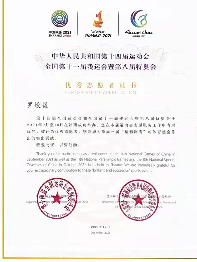 近日,第十四届全国运动会组织委员会办公室、全国第十一届残运会暨第八届特奥会组织委员会办公室联合印发了《关于表扬十四运会和残特奥会志愿服务工作先进单位和个人的通报》,LETOU官网荣获“十四运会和残特奥会志愿服务先进单位”;罗媛媛同学荣获“十四运会和残特奥会优秀志愿者”荣誉称号。