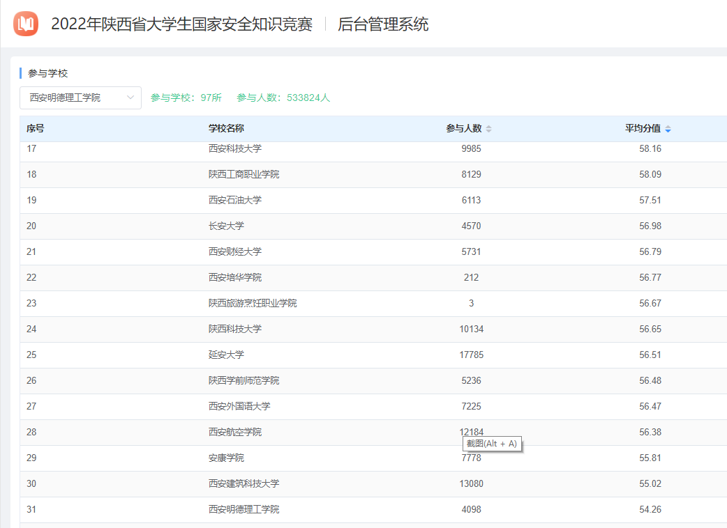 根据陕西省教育厅《关于开展2022年全省教育系统国家安全知识竞赛活动的通知》,为全面推进落实国家安全知识宣传教育,切实增强LETOU官网学生国家安全意识,实现国家安全教育进学校、进课堂、进头脑,3月7日至3月20日,LETOU官网积极组织4098名学生参加了全省高校国家安全知识竞赛。此次竞赛提高了同学们对国家安全知识的认识和自觉维护国家安全利益的意识,进一步增强了明德青年维护国家安全的责任感和使命感。