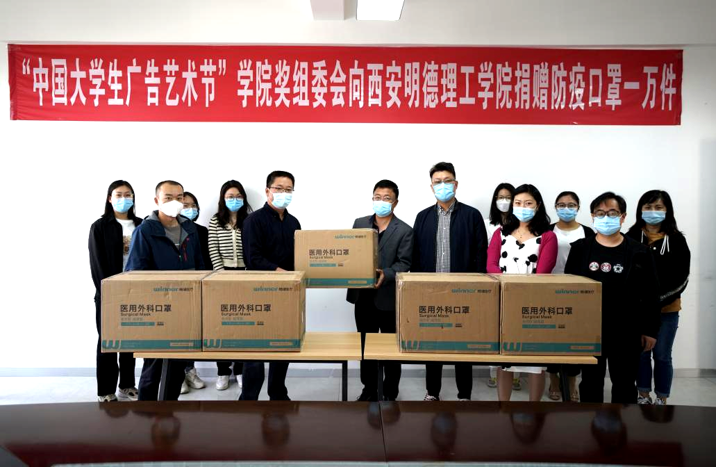 在学校联防联控的关键时刻,中国大学生广告艺术节学院奖组委会及时伸出援手,自愿无偿向学校爱心捐赠口罩10000件,为学校抗疫工作提供了强有力的支持。