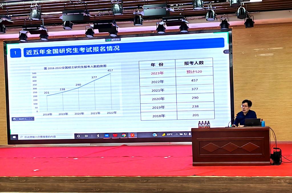 动员会上,庾鲜海教授从学生就业大环境的变化及学校在助力学生考研方面所做出的努力进行说明,同时庾教授从自身学习和从教四十年的职业历程向同学们强调了选择考研的重要意义,以及复习过程中如何科学有效备考,鼓励同学们把握机会、持之以恒,全身心地投入到考研之中。