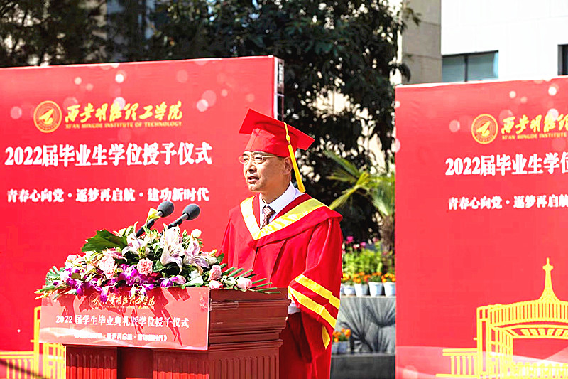 希望同学们要以“终身学习”的奋斗姿态,在厚积薄发中绽放青春风采。“苟日新、日日新、又日新”。今日之时代,是一个知识大爆炸的时代,科学技术日新月异,知识更新周期大大缩短,各种新知识、新科技、新事物层出不穷,社会发展瞬息万变。近50年来,人类社会创造的知识比过去3000年的总和还要多,在农耕时代,一个人读几年书,就可以用一辈子;在工业经济时代,一个人读十几年书,才够用一辈子;而到了知识经济和数字经济时代,一个人必须学习一辈子,才能跟上时代前进的脚步。正如西安交大王树国校长所讲:当今社会在很多方面已经走在高校前面,可以说大学作为新思想、新知识主要诞生地的优势已不复存在,因此终身学习的要求从未像今天这样迫切。你们当中有人选择继续深造学习,有人选择就业工作,还有人选择了自主创业,但无论怎样,今天的毕业绝不是学习的终点,而是终身学习的起点,希望同学们要始终跟上这个带感的时代节奏,不惧“内卷”,拒绝“躺平”,绝不“摆烂”,时刻怀着谦逊上进、学无止境的奋斗姿态,在厚积薄发中走好自己的人生旅途。