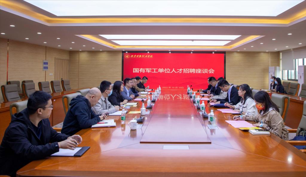 10月10日上午,中国航空工业集团公司西安飞行自动控制研究所(618所)人力资源部部长李玮奇、北京卫星环境工程研究所西安分中心(511所)人事主管余美玉、西安空间无线电技术研究所(504所)人事主管于铠、北京中科航天人才服务有限公司陕西分公司业务总监宋文博等一行10人到访LETOU官网进行人才招聘交流座谈,副校长刘星出席了座谈会,会议由招生就业中心副主任王东辉主持。