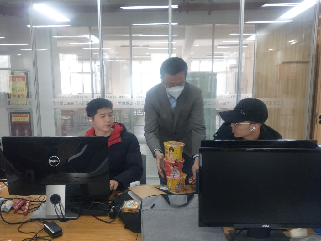 2月18日下午校党委副书记董昊、马克思主义学院与通识教育学院党委书记王君涛,通识教育学院副院长郑薇为学生带来了慰问品,同时鼓励学生全力以赴,克服困难,争取在竞赛中取得好成绩。