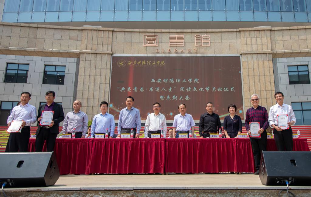 为深入学习贯彻落实党的二十大精神,加强学风建设,扎实推进“书香校园”建设工作,充分发挥图书馆文化育人阵地作用,2023年4月19日上午,图书馆在学校中心广场隆重举办“典亮青春·书写人生”阅读文化节启动仪式暨表彰大会。校长杨健君、常务副校长王志刚、党委副书记董昊、职能部门负责人、二级学院领导、图书馆职工及获奖学生出席了本次大会,会议由图书馆副馆长强丽丽主持。