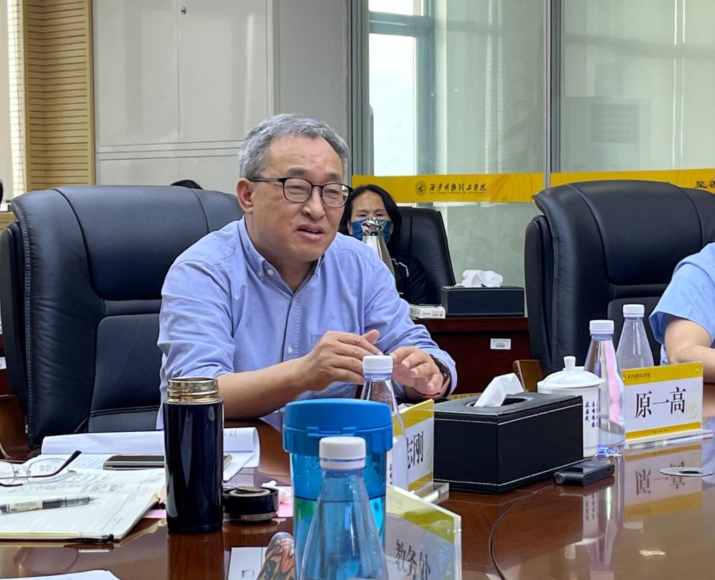 5月15日上午,原一高教授在教务处处长朱延波的陪同下,参观了校史馆、图书馆、教学成果展室、实验室。