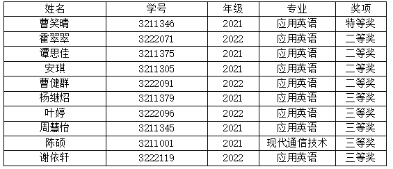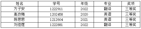 本科英语组4人荣获三等奖。