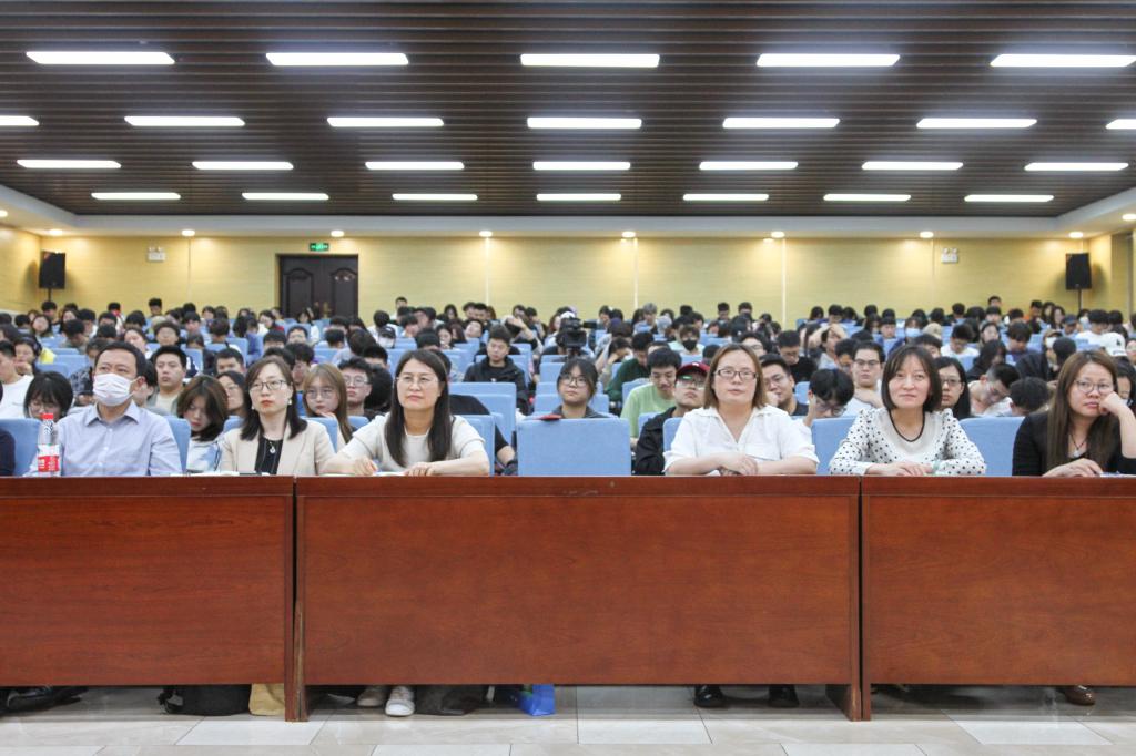 2023年5月31日晚上,图书馆(档案、校史馆)联合党委组织宣传部、党委学生工作部、校团委、校工会、艺术与设计学院在建德楼203报告厅举办学术月第四场讲座。本次讲座特邀西北工业大学教授、博士生导师余隋怀教授主讲,主题是《从文物看中华文明和创新精神》。学校党委副书记董昊、教职工代表和400余名学生现场聆听了讲座。本次讲座同时开通线上直播,共有12400余名师生线上聆听了本场讲座。讲座由图书馆(档案、校史馆)馆长王爱霞主持。